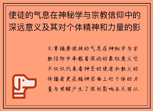使徒的气息在神秘学与宗教信仰中的深远意义及其对个体精神和力量的影响